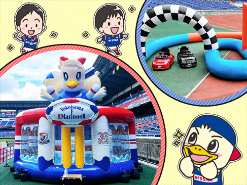 バックスタンドのファミリーゾーン近くのピッチ上に、小さなお子様が試合中でも遊べる「キッズピッチランドふぁふぁ」「ゴーカート」が登場!試合中もお楽しみいただけます。