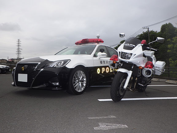 スタジアムにパトカーや白バイ、ミニミニパトカーがやってきます。展示に加えて体験乗車も!