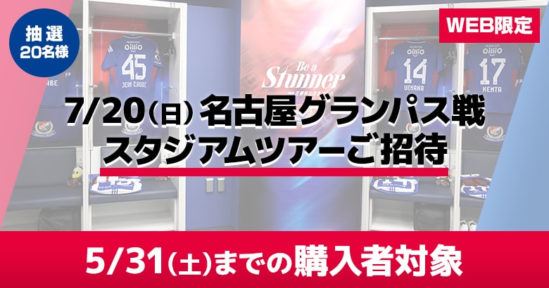 5/31(土)までにご入会の方から抽選で20名様を、 7/20(日)名古屋グランパス戦のスタジアムツアーにご招待いたします。